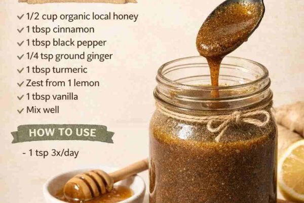 Ovaj recept je tradicionalna mješavina sastojaka poznatih po svojim antibakterijskim, antivirusnim i protuupalnim svojstvima. Sastojci: 1 srednja glavica Luka (crveni luk, narezan na ploške) 1 glavica Bijelog luka (češnjaka), oguljena i blago zgnječena (oko 8-10 češanja) 1 komad Đumbira (veličine palca), oguljen i narezan na tanje ploške ili kockice 1/2 Limuna, narezan na ploške…