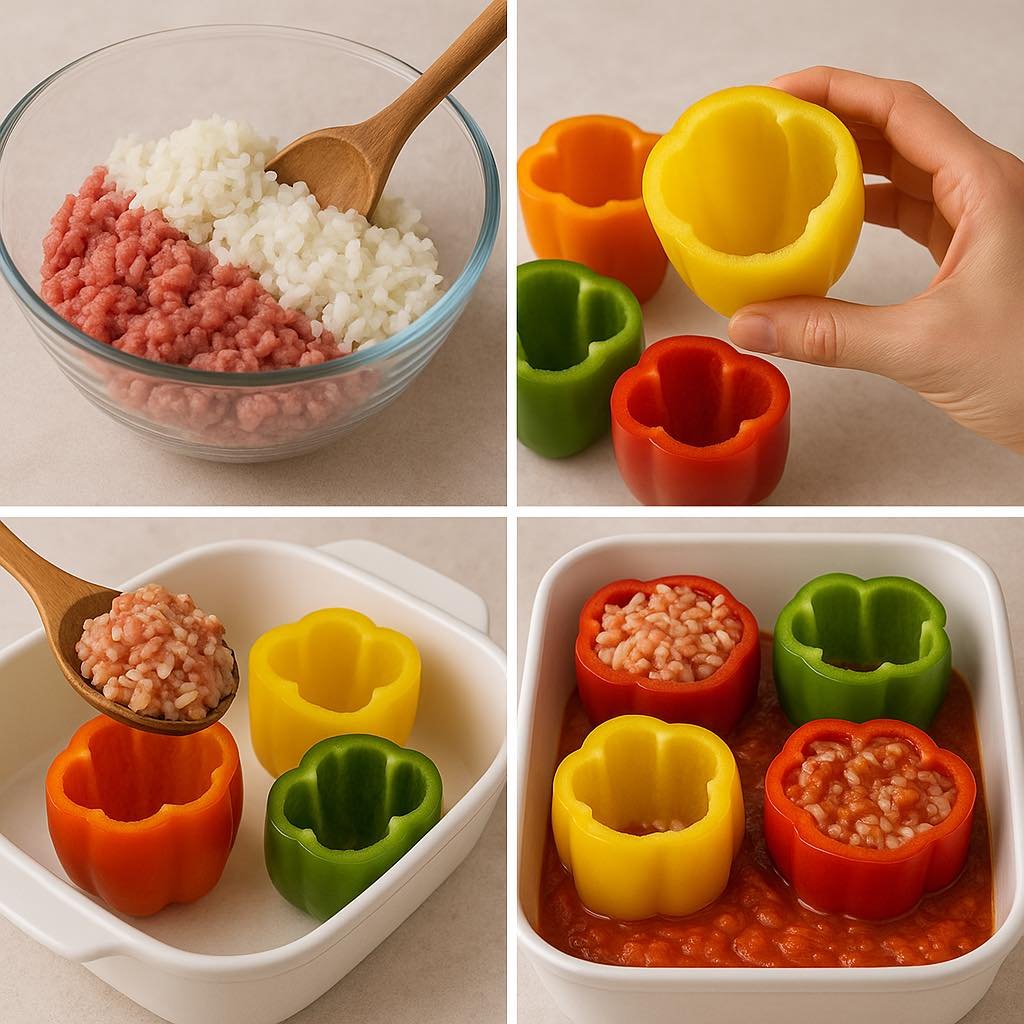 💡 Savjet: Punjene paprike poslužite uz domaći hljeb ili pire krompir. Ostavite ih da odstoje 15 minuta prije serviranja – tada su najukusnije, sočne i pune mirisa koji osvajaju!