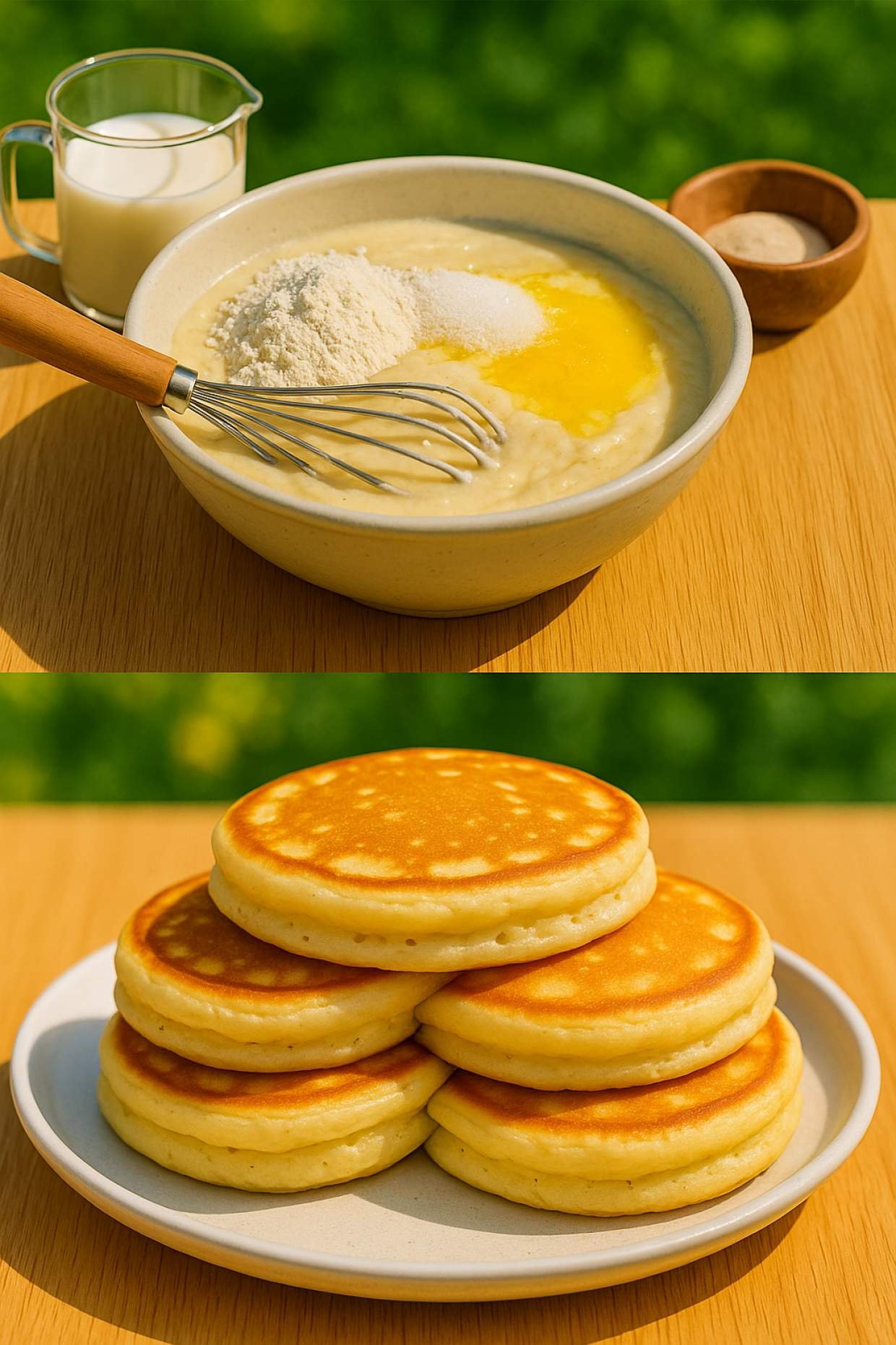 5️⃣ Sipajte malu količinu smjese i pecite dok se ne pojave mjehurići, zatim okrenite i pecite još 1–2 minute.