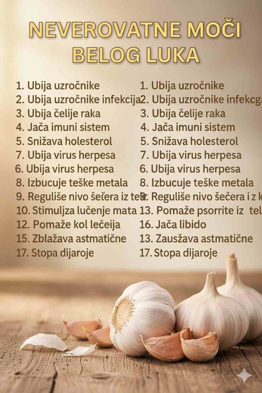 ​Beli luk (Allium sativum) je mnogo više od običnog začina. Korišćen hiljadama godina širom sveta, od drevnog Egipta do savremene medicine, beli luk je prepoznat kao izuzetno moćan prirodni lek i nezaobilazni sastojak zdrave ishrane. Njegove neverovatne terapeutske sposobnosti potiču od sumpornih jedinjenja, od kojih je najvažniji alicin, koji se oslobađa tek kada se luk zgnječi, isecka ili žvaće.