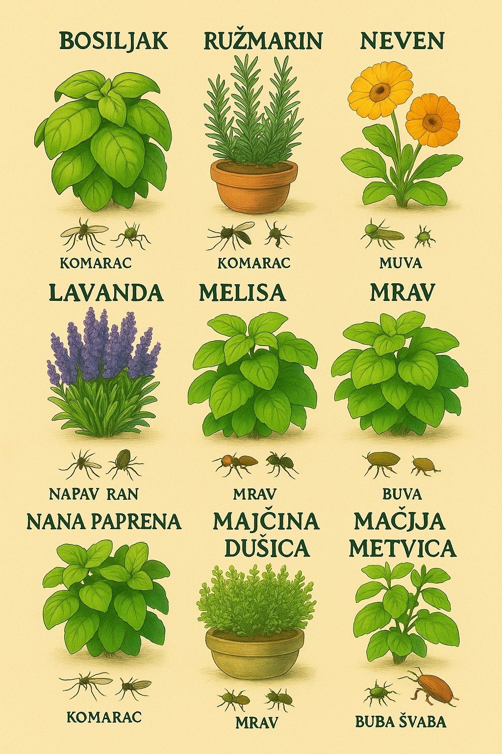 Bosiljak nije samo ukusan dodatak vašoj kuhinji, već i odlično sredstvo za odbijanje štetočina. Jak miris bosiljka odbija muhe i komarce.