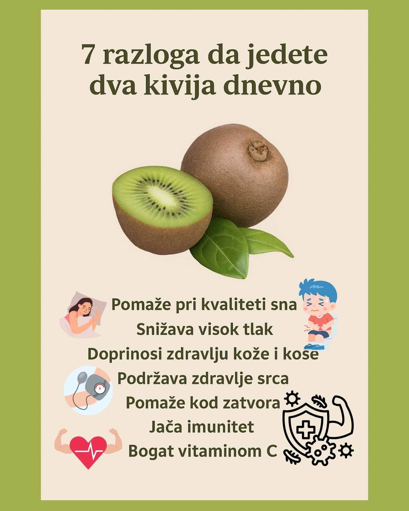 Kivi sadrži serotonin, hormon koji može imati sedativni učinak. Ako pojedete dva kivija sat vremena prije spavanja, to vam može pomoći da brže zaspite i duže spavate.