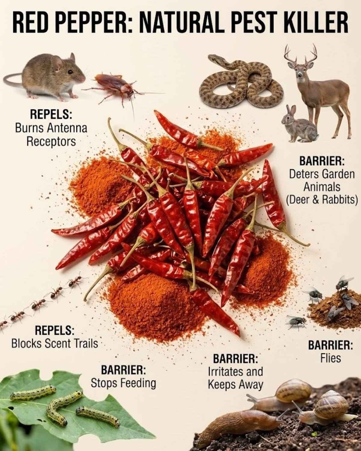 Većina ljudi koristi crvenu papriku samo za kuhanje – ali ovaj jednostavni začin je jedno od najjačih prirodnih sredstava za odvraćanje štetočina koje već imate kod kuće.