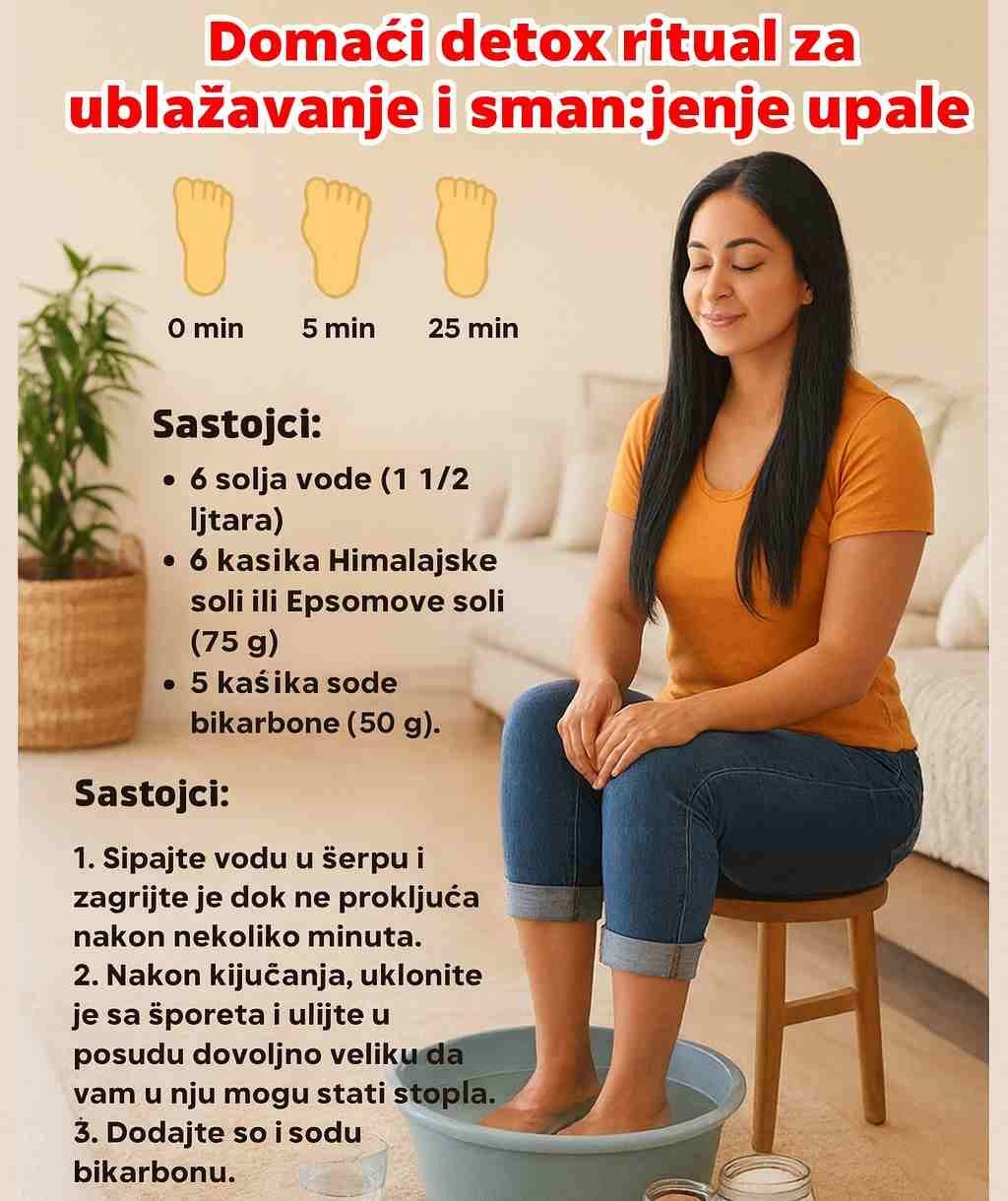 Ovaj kućni ritual idealan je za borbu protiv svakodnevnog umora, stresa i napetosti. Mnogi ga koriste kako bi smanjili otok, poboljšali udobnost stopala ili jednostavno stvorili trenutak mira u svom domu. Sve što vam treba jeste posuda, topla voda i nekoliko osnovnih sastojaka, a efekti se mogu osjetiti već nakon 15 minuta namakanja.