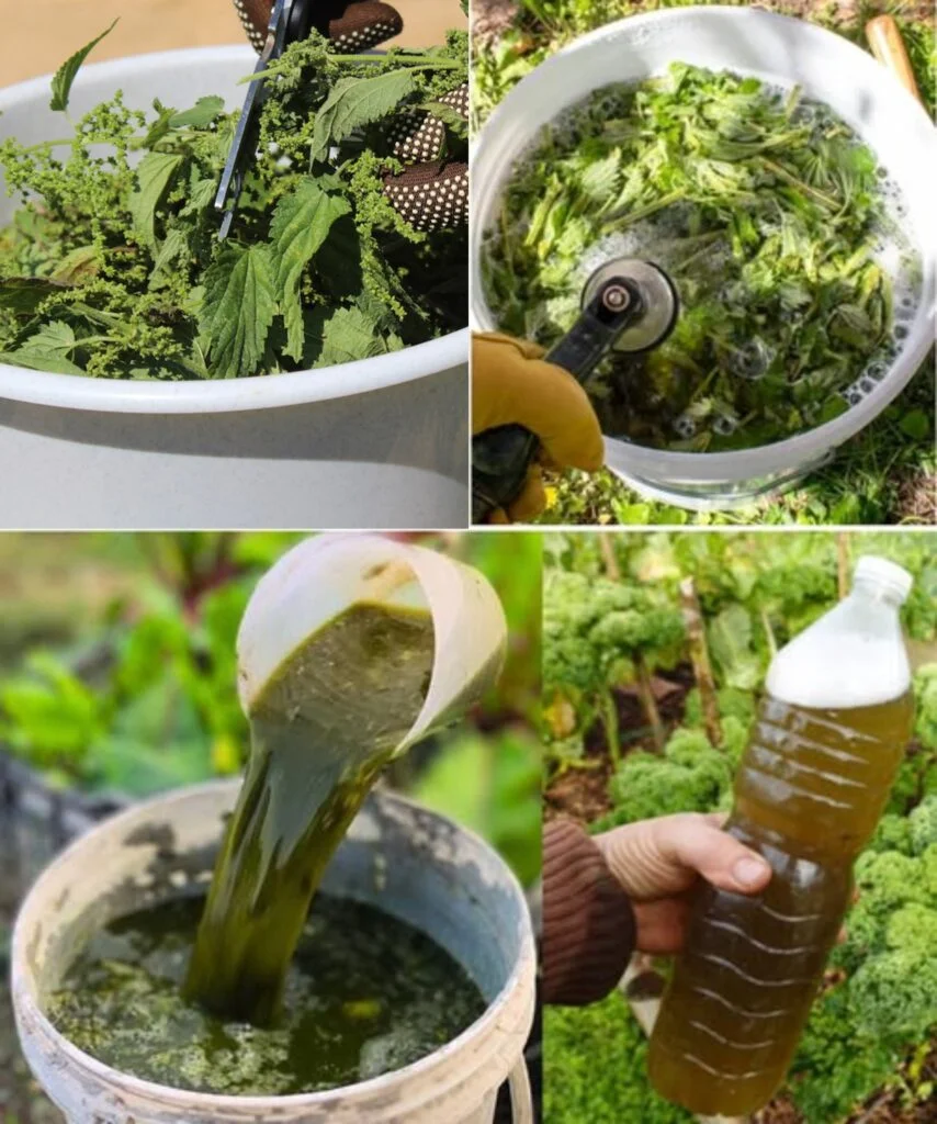 Potopite svježe listove koprive u vodu na 2–3 sedmice, povremeno promiješajte. Kada poprimi jak miris, procijedite i razrijedite prije upotrebe na biljkama. Time im dajete azot, kalij i fosfor za zdrav rast.