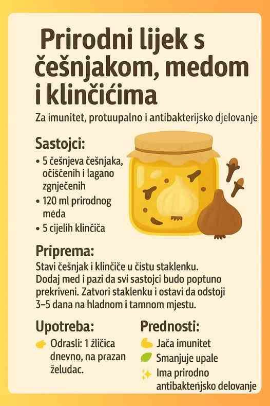- Češnjak i med koriste se zajedno kao prirodan lijek zbog svojih antibakterijskih i protuupalni svojstava.