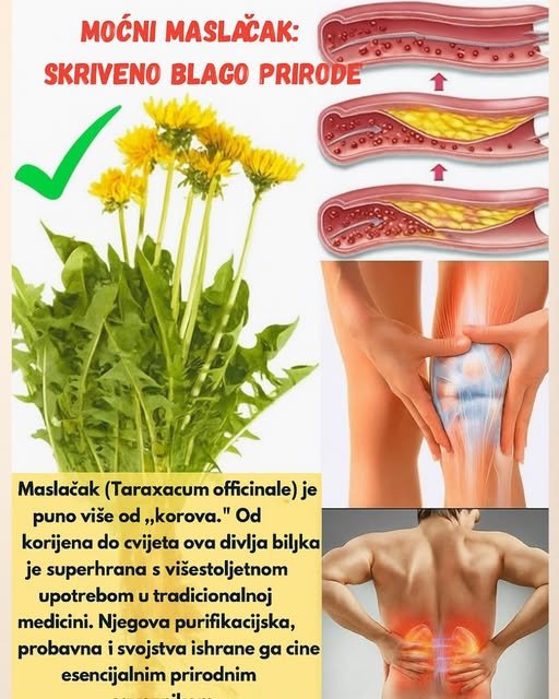 Maslačak (Taraxacum officinale) nije običan „korov“ — to je prava superhrana! Od korijena do cvijeta, svaka njegova čest ima ljekovitu moć. Stoljećima se koristi u tradicionalnoj medicini zbog svojih pročišćavajućih, probavnih i hranjivih svojstava. Ova divlja biljka čisti, jača i obnavlja tijelo iznutra.