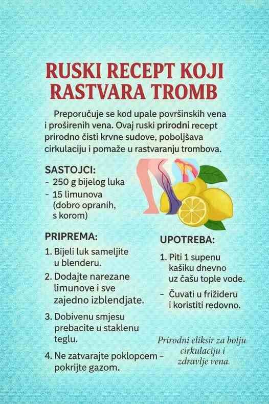 Dodajte limun i cimet. Limun se nikada ne stavlja u vruće kako ne bi izgubio svoja ljekovita svojstva jer je vitamin C termolabilan. Pijte po jednu čašu dnevno i primjetit ćete znatno poboljšanje.