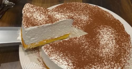Na ohlađeni biskvit rasporedite topli šaum, poravnajte površinu i po želji pospite kakaom. Ostavite da se ohladi i uživajte u savršeno laganoj, pjenastoj šampiti!