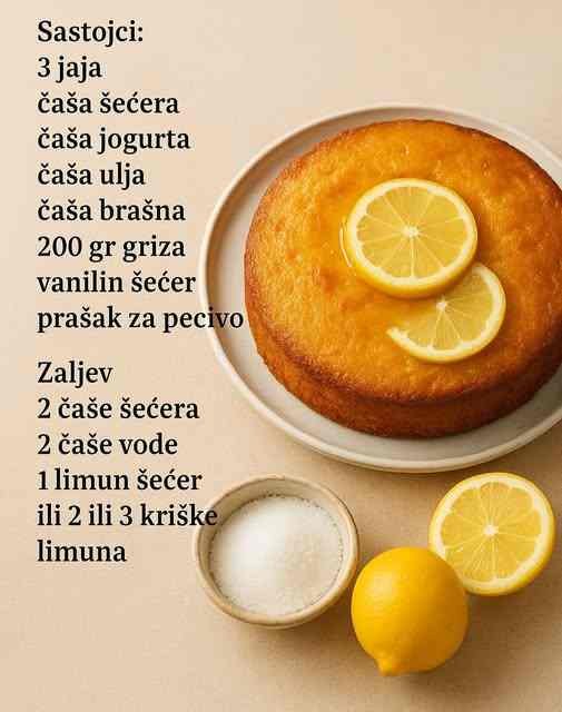 Sočni kolač od griza (jednostavno – “mera na čašu” sa šoljom od 200 ml)