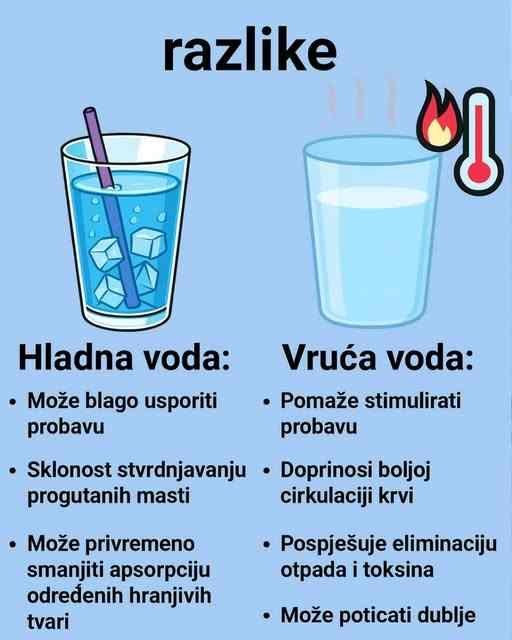 Iako je hladna voda osvježavajuća i mnogima veoma privlačna, posebno tokom toplih dana, njen utjecaj na tijelo nije uvijek najpovoljniji. Temperatura vode koju pijemo može značajno utjecati na probavu, cirkulaciju, pa čak i na apsorpciju hranjivih tvari. Topla voda se u tradicionalnim medicinskim praksama širom svijeta smatra blagim, ali moćnim saveznikom zdravlja, dok hladna voda može usporiti određene prirodne procese u tijelu.